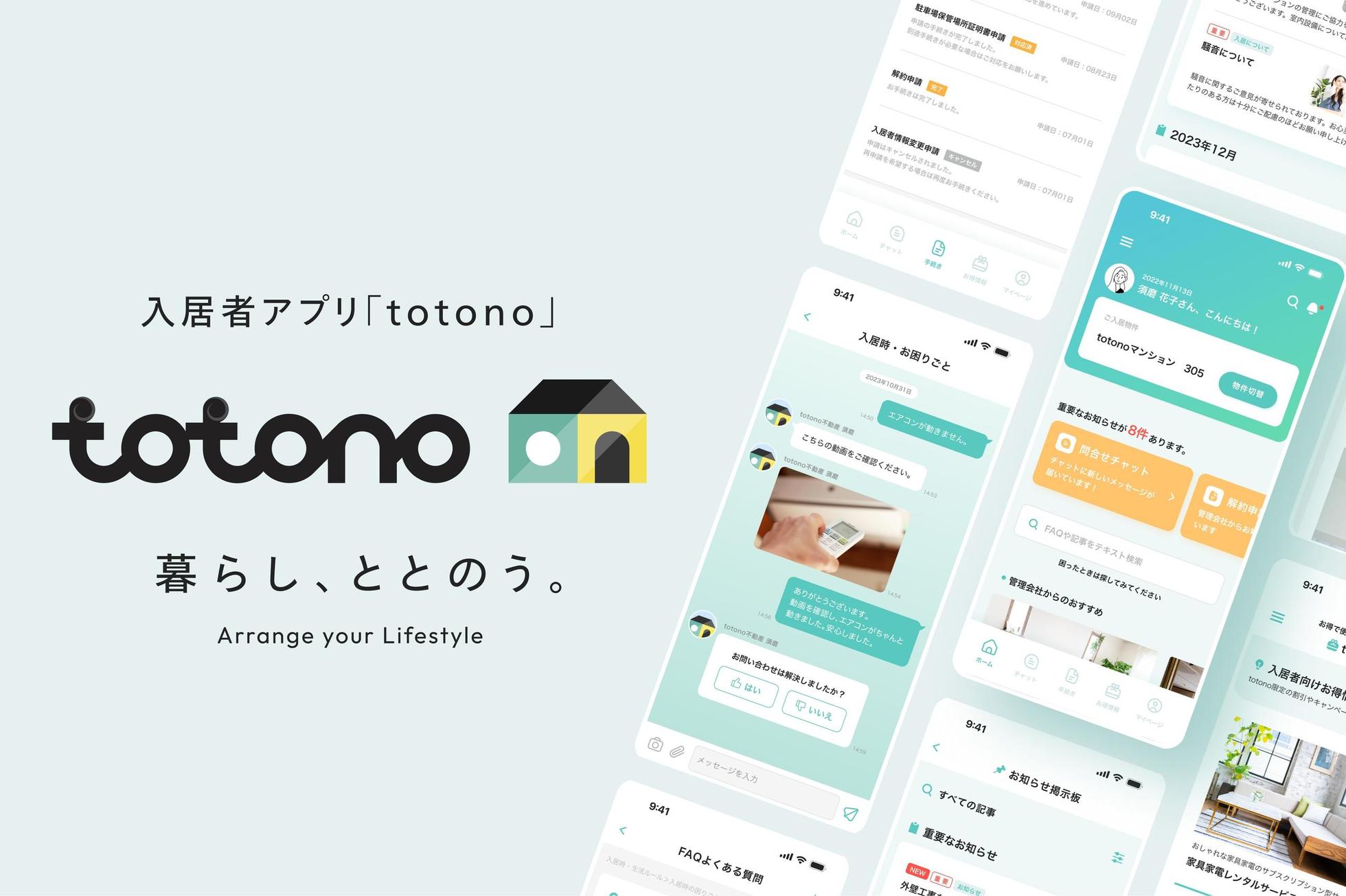 入居者向けアプリケーションプラットフォーム「totono」は、入居中の困りごとを電話や書面ではなく、アプリから簡単に申請したり、問い合わせできるプラットフォームです。いちいち電話して、書面で申請する面倒くさいやり取りを無くしていく、不動産×テクノロジーをサービス化していきます。