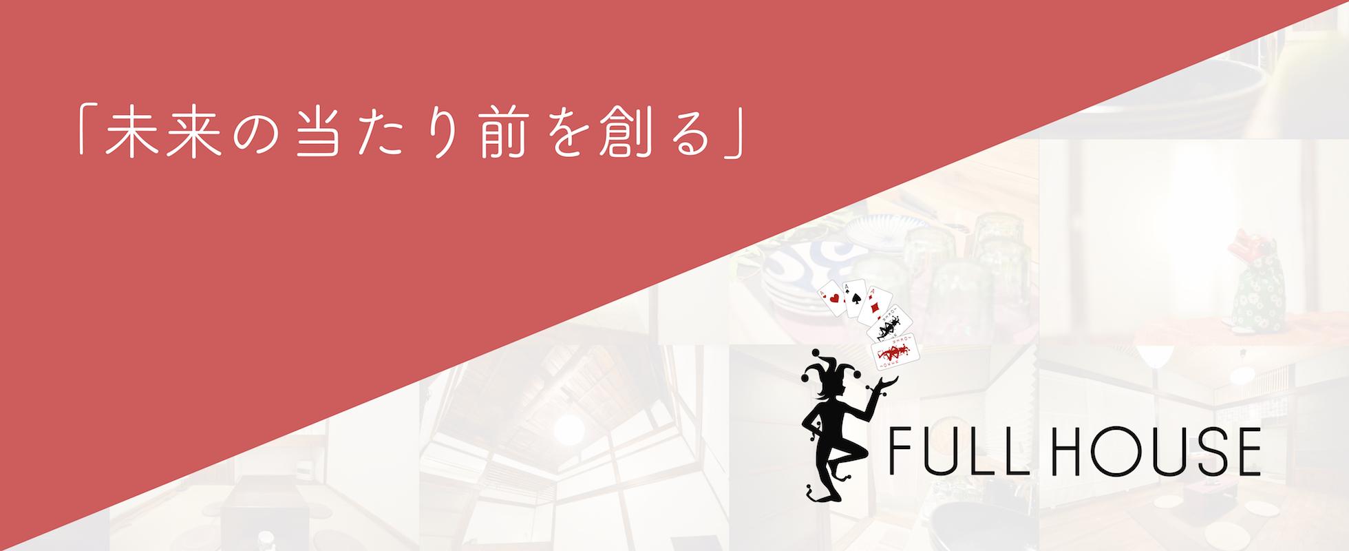 株式会社FULL HOUSEという社名は、トランプのポーカーの役であるフルハウスに由来しています。フルハウスはスリーカードとワンペアが融合したものです。スリーカードは創業者である松本・加瀬・青井をはじめとするFULL HOUSEの創業メンバーを表し、ワンペアはインターネット×◯◯を表しています。