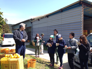 愛媛県愛南町「マルエムフルーツアイランド」さんにて美生柑の産地研修。