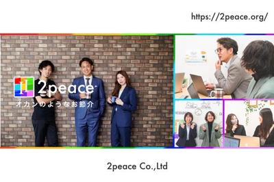 株式会社2peaceは「オカンのようなお節介で温かく」をスローガンに、企業の採用活動と求職者の転職活動支援をメインに事業を展開している、大阪のベンチャー企業です。 人財紹介/人財派遣/人財教育/HRコンサルティングまで、人に関わるあらゆる悩みを解決します。 「無資格・未経験」でも社会参画できる仕組みを作り出し、採用市場の変化と、採用現場の動向をしっかりと捉え、企業も働く人も前向きに社会貢献ができる世の中を、人財事業を通じて創出していきます。 【事業内容】 「人財紹介」 全国求人案件数20000件。求職者エントリー数1000人超/月を取り扱っています。「求職者ファースト」の寄り添い方で、全国の転職市場を支えます。求職者だけではわからないこと、判断しづらいことも、転職までの伴走支援でサポートします。20代〜40代の転職を積極的に応援しています。また製造業の転職支援も積極的に取り組んでおり、大手製造会社から地方の町工場まで幅広く取り扱っています。 「人財派遣」 関西を中心に幅広く対応しています。特に製造/販売/営業/事務といった安定した継続的な仕事に強く、就職後も徹底した伴走サポートを行います。 「HRコンサルティング」 条件だけでは差別化できない企業を中心に、採用の「見える化」を基準に採用につながるコンサルティングを行っています。MVVの再設定から、労務環境の改善、人事評価制度の設定まで、人財紹介会社の領域を超えて伴走支援を行なっています。 「インターン生の採用」 新卒採用支援を行いながら、自社のインターン生採用も取り入れています。企業には社員が、学生にはインターン生がアプローチを行う形式を採用しています。学生の理想の就活を形にするために、学生ならではの発想とポテンシャルで活躍の場を提供しています。 「キャリア教育事業」 中高生を中心に、働く意味と働くことに対する考えを、遊びの中から学ぶ「アソビカケル」事業を展開しています。職能ではなく「人間力」を養うきっかけをキャリア教育の中から創っていきます。 「SES事業/エンジニア雇用」 エンジニア人財の雇用を支えるために、2024年からSES事業の展開をしています。正社員、契約社員、業務委託と働き方も様々になります。全国の案件を扱い、エンジニア能力に合わせて幅広い提案ができるように取り扱っています。 【今後の展望】 2025年には、社員数を20名に増やす計画です。各業種の担当を専任で任せ、より広い業種に、より深く関われるように事業規模拡大を計画しています。またM&Aによる事業規模拡大も計画しており、人財会社だけでは満たせなかった領域まで一貫したサポートができるように展開していく計画です。 売り上げ規模と共に、当社のサービスを通して世の中にどんな変革を与えられるかを大切にしています。また、社会問題にアプローチできる事業を設計して、社会貢献を軸に世の中を変えられるサービスを創り「あなたにとって唯一無二の存在」となることを目指します。 【熱くなれる仲間募集】 若手人財を中心に、人の想いに共感し、ともに成長できる仲間がたくさん集まっています。 ・人の事を大切にできる方。 ・一丸となって、事業を作り上げたい方。 ・挑戦することを恐れず、成長意欲の高い方。