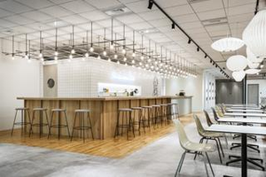社内カフェエリアでは、メンバーが集まってティータイムやランチを食べて交流