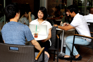 時には青山のおしゃれなカフェでミーティングを行なっています