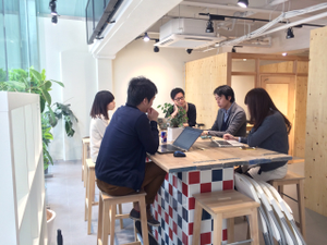 路面の明るいオフィス。様々な場所でオープンな議論が行われます