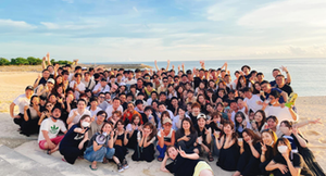 「何をやるかより、誰とやるか」を大切に、成長モチベーションの高い方を積極採用しています。写真は2022年度の沖縄社員旅行のようす。