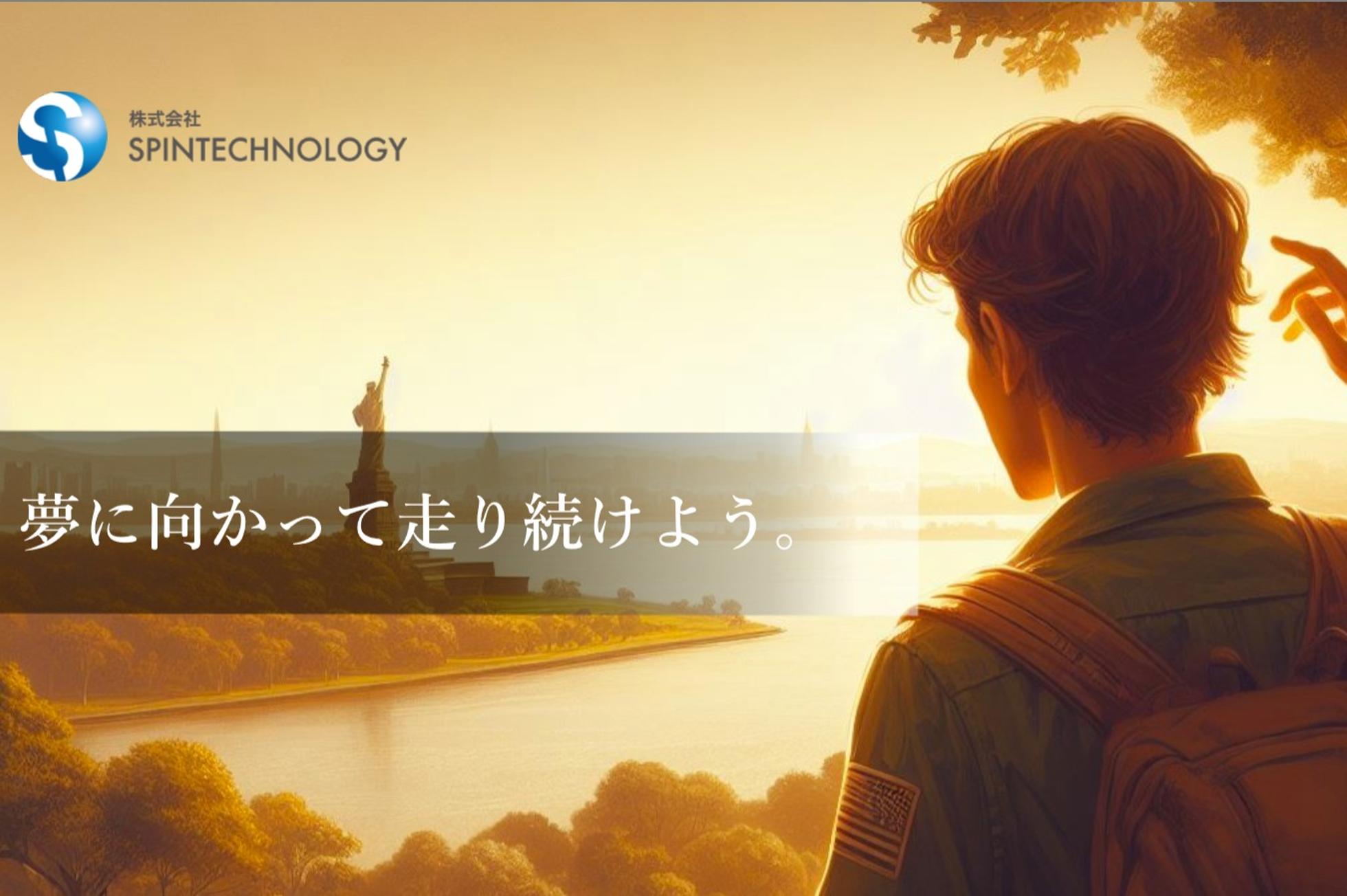当社は創業間もないベンチャー企業です。 日本一のITベンチャーを目指す上で、問題も発生してくるかと思いますが、 経営理念として「志しむことからすべてがはじまる」と言う経営理念を掲げてます。 志しむと造語を使っていますが、簡潔に言うと志(人生の目的や動機=自己実現したい事)を成し遂げる事を楽しむという事です。 会社の仲間には、必ず幸せになってもらいたい。それが私の嘘偽りのない想いです。 会社と言うのは、1人1人が自己実現を実現する舞台であり、1人1人が主役で1人1人輝く場所です。 今現在、様々な想いを抱えてる人も多いと思います。 今までの人生順風満帆な人、かたや今まで上手くいかず挫折した人、これからが不安な人等、 どんな過去や現在があっても 自分を変えたい!どうにかしたい! と言う想いがあれば、スピンテクノロジーは最後の最後まで仲間の志を成し遂げるまであきらめない! 一緒に協力し時に、時には一緒に悩み、一緒に志しんで行く! そんな仲間と一緒に会社を作っていきたいと思います。