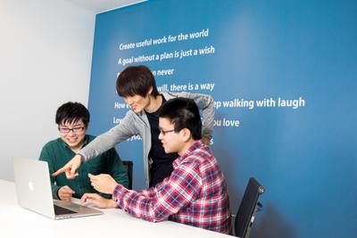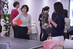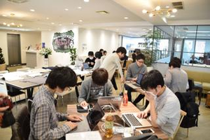 現在、70名、13年目に突入。 平均年齢29歳、女性比率約4割ととても賑やかな会社です。 これも「仕事は楽しく」をモットーに社員交流や知識・スキル習得のさまざまな機会をつくり、受託案件獲得や自社プロジェクトに挑戦した結果です。 一人ひとりが強みを活かし、協力し合う雰囲気に会社としての一体感を実感できることでしょう。 新たな発想、柔軟な思考を刺激するため、ダーツや卓球台、緑のスポット、大きな熱帯魚の水槽をもうけた癒しのスポットなどももうけています。 また、社員だけに止まらず外部の会社や人材の交流スポットともなるカフェやバーカウンターなどもあります。新しい繋がりネットワークをつくることにも役立てられています。