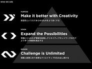 “Make it better with Creativity”を合言葉に企画立案から実装まで、さまざまな領域で課題解決に向けたプロデュースを行う総合クリエイティブカンパニーです。