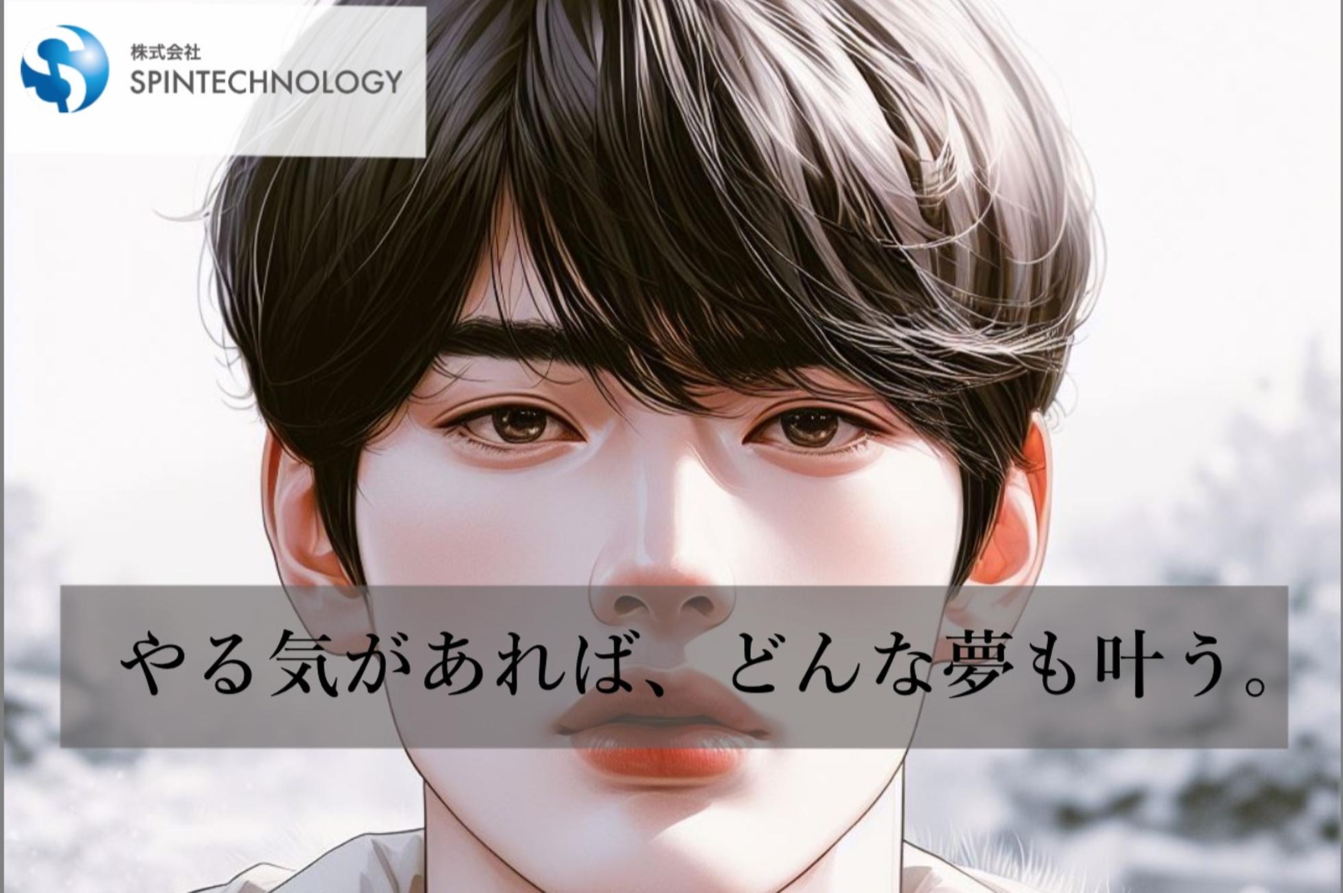 当社は創業間もないベンチャー企業です。 日本一のITベンチャーを目指す上で、問題も発生してくるかと思いますが、 経営理念として「志しむことからすべてがはじまる」と言う経営理念を掲げてます。 志しむと造語を使っていますが、簡潔に言うと志(人生の目的や動機=自己実現したい事)を成し遂げる事を楽しむという事です。 会社の仲間には、必ず幸せになってもらいたい。それが私の嘘偽りのない想いです。 会社と言うのは、1人1人が自己実現を実現する舞台であり、1人1人が主役で1人1人輝く場所です。 今現在、様々な想いを抱えてる人も多いと思います。 今までの人生順風満帆な人、かたや今まで上手くいかず挫折した人、これからが不安な人等、 どんな過去や現在があっても 自分を変えたい!どうにかしたい! と言う想いがあれば、スピンテクノロジーは最後の最後まで仲間の志を成し遂げるまであきらめない! 一緒に協力し時に、時には一緒に悩み、一緒に志しんで行く! そんな仲間と一緒に会社を作っていきたいと思います。