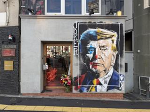 南青山の外苑前駅1-a出口より徒歩5秒のところにビル一棟を借りてオフィスに。中は狭いですが立地は最高です。ここをTOKYO MURAL SQUAREと名付けて毎月、公開制作で壁画を描き変えています。ですので写真のトランプ大統領の壁画はもう今はなく別の壁画になっています。