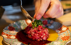 1Fでは和牛レストランを運営。和牛と日本酒のペアリングを提案しています