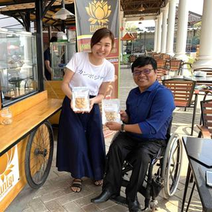 創業するきっかけになった、カンボジアで障がい者雇用事業展開するサミスさんと。