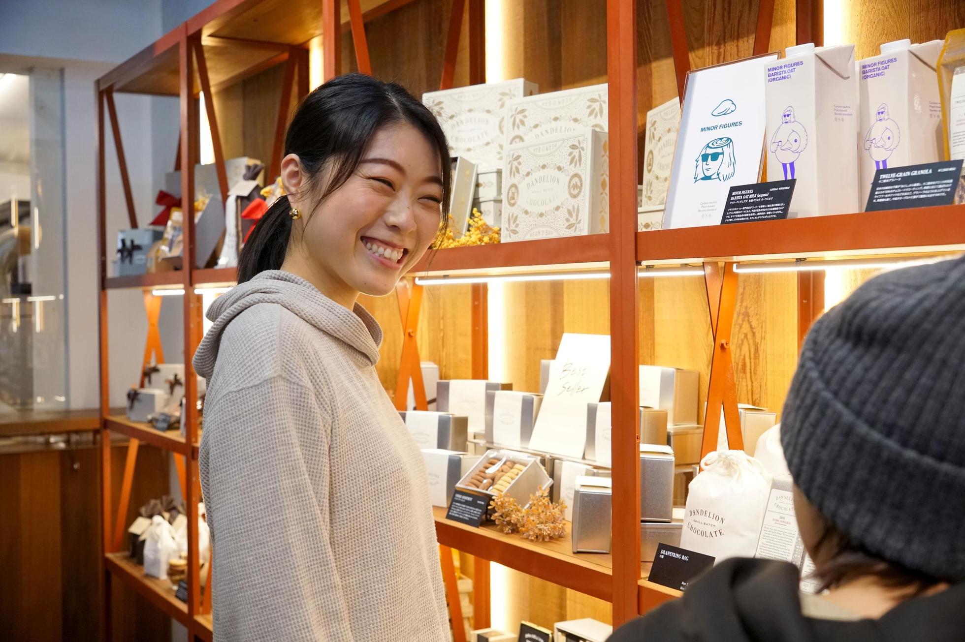 //「すき」を仕事にしながらプライベートも大切に// //小さなチームならではの様々な経験を積むことができます// 東京・蔵前の自社ファクトリーで作るチョコレートを使用した 焼き菓子などをお客様に提供・販売するお仕事です。お客様に一番近いポジションとして、効果的な商品のディスプレイを考えたり、クラフトチョコレートの知識を学んで自分だけのおすすめポイントを見つけてみたり、単なる接客・販売だけではないあなたらしい働き方を一緒に創りましょう。 <<こんな熱い想いを持った方、ぜひご応募お待ちしています>> ・チョコレートを通して人々を幸せにしたい!好きを仕事にしたい! ・クラフトフードカルチャーを発信し、日本を盛り上げたい!