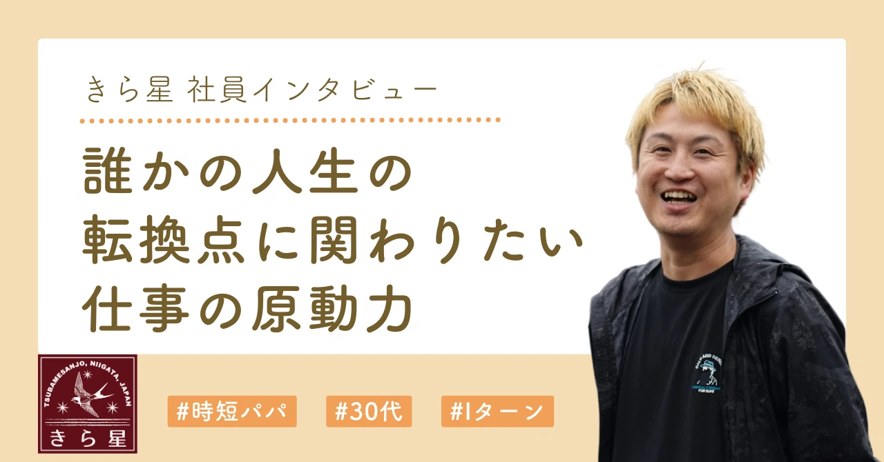 WEB業界のディレクター、メーカーの総務、営業と経験した後にきら星株式会社に入社しました。 自分が生まれ育った新潟をもっと元気にする仕事に携われてやりがいを感じています! きら星で働きながら、個人事業でカフェを運営したり、別場所を間借りしてボードゲームイベントを企画するなど自由な働き方を実現しています!