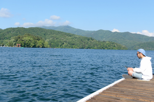 疲れたら野尻湖のほとりに移動してリラックスしながらお仕事。