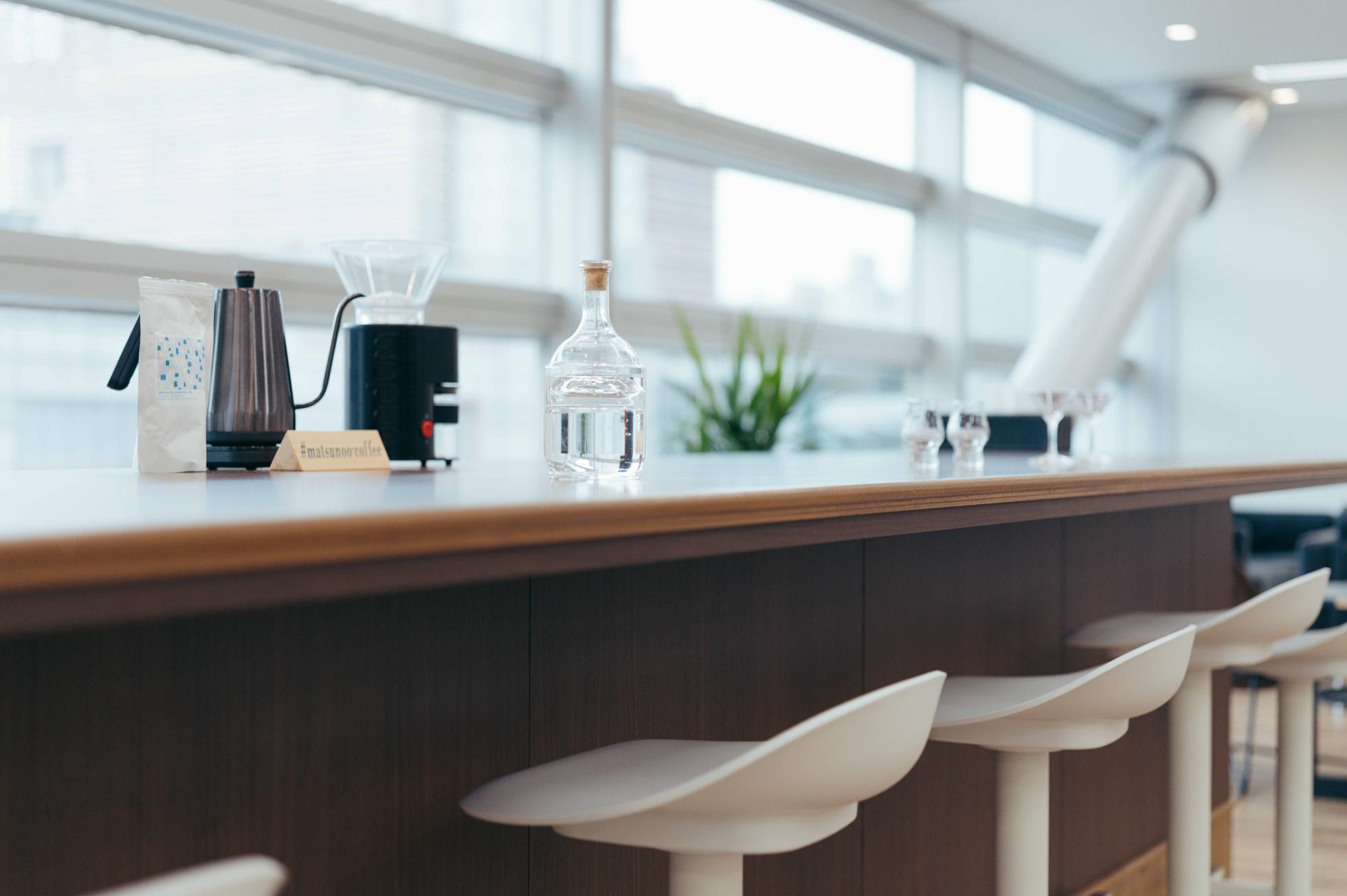 社内のバーカウンター。毎月メンバーみんなで集まってわいわい、交流しています。