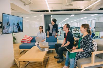 オフィスのフリースペース、通称「3号カフェ」(近くを通る首都高3号線から)。作業やミーティングスペースとしてはもちろん、勉強会の会場としても使われます。