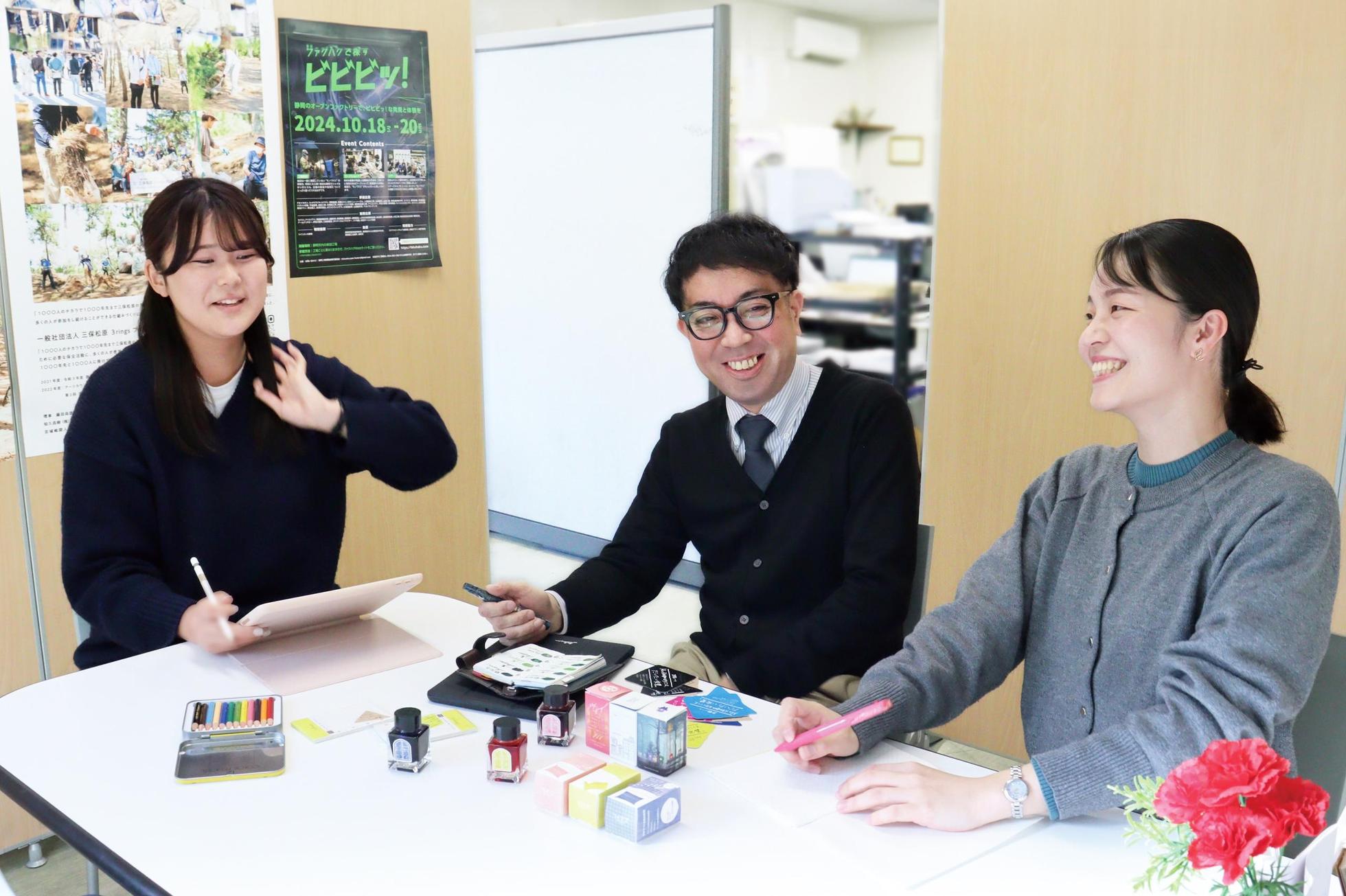 私は主に、企業向けの販促物やイベントのノベルティのデザイン制作、自社商品の開発やそのデザインなどを行なっています。 自分が手がけたデザインが印刷物として形になり、実際にお客様の手元に届き嬉しいお言葉をいただいた時は、やりがいを感じ自分の強みになっています。