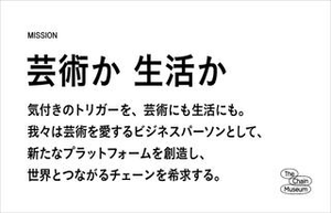 ■Mission 「芸術か 生活か」 気付きのトリガーを、芸術にも生活にも。 我々は芸術を愛するビジネスパーソンとして、 新たなプラットフォームを創造し、 世界とつながるチェーンを希求する。 ■Values The Chain Museumでは「気付きのトリガーを、芸術にも生活にも。」を実現すべく、メンバーの行動指針を示す3つの「Value」を掲げています。 Be professional ・芸術を愛するビジネスパーソンとしての誇りを持とう。 ・成長することを諦めず、仲間から頼られる存在であり続けよう。 ・周囲の期待を超えるユニークな価値を実現しよう。 Be in the groove ・ひとりの力で達成できないミッションを達成するために。 ・アイディアを捻り出し、チームを巻き込み、プロジェクトに加担しよう。 ・リアルやデジタルの境を超えて全員で最高のパフォーマンスを発揮しよう。 Be proactive ・芸術にも生活にも気づきのトリガーを生み出すために。 ・あらゆるステークホルダーの立場に立って想像することでニーズを発見しよう。 ・スピード感を持って、大胆なくらいに、一歩先の提案をし続けよう。諦めずに。