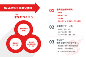 突然ですが、【84%】という数字、これは何を示していると思いますか...? 実は、ネクストウェアに【文系出身】もしくは【IT業界未経験】で入社し、現在エンジニアとして活躍している社員の割合です! この数字に驚かれた方も多いのではないでしょうか。 しかし、その裏では、高まり続けるIT人材の需要により、【IT業界=ブラック】な印象があることも否定できません。 ネクストウェアは上場企業として、 【クリーンな労働環境】を整備し、未経験からでも【一流のIT人材】を目指せる職場づくりを創業時から追求しています。 そんなネクストウェアを少しのぞいてみませんか? ▍事業内容 ①最先端技術の研究・開発 時代に求められる最先端技術の研究から導入の検証まで、日々取り組んでいます。 ・最先端の顔認証システム開発 https://www.wantedly.com/companies/company_1336574/post_articles/938663 ・FDC技術とビッグデータのAI自動解析 https://www.nextware.co.jp/service/factory/ ・ブロックチェーンによるシステム開発 https://www.nextware.co.jp/service/blockchain/ ② ITソリューションの提供 課題に応じてDXコンサルティングから、システムの設計、開発、導入、運用、保守までワンストップでサポートしています。 https://www.nextware.co.jp/service/dx/ ・企業向け 東証プライム市場に上場する大手企業様に向けて、課題解決のためのIT技術やシステム開発を通じてサポートしています。 ・官公庁、地方自治体向け 日本全体や、地方の安心・安全を支えるため、 最新の技術を駆使したシステムサービスを提供しています。 ▍ネクストウェアの強み ①確かな経営基盤 ネクストウェアは東証スタンダード市場に上場しており、1990年の設立から今年で34年目を迎える独立系SIerです。確かな経営基盤があるからこそ、新たな技術への取り組みや若手の育成に力を入れることができます。 ②挑戦できる環境 独立系SIerの強みは、扱う技術やシステムに制約がなく、幅広く自由な開発が行えることです。様々な技術やソリューションに関わりながら、真の意味でお客様が求めるサービスを追求することで、技術者としての成長を加速させます。 ③頑張りが評価される制度 ネクストウェアでは外資系企業のような、エンジニアファーストで透明性の高い評価制度を採用しています。若手であっても、技術の習得やプロジェクトでの活躍に応じて、公平に評価される体制が整っています。 ▍今後の展望 これらの強みを活かし、今後はAIや最先端技術への取り組みにさらに力を入れ、国内で業界をリードする企業を目指しています。その実現のために、ネクストウェアに新たな風を吹き込んでくださる新しいメンバーを現在募集しています!