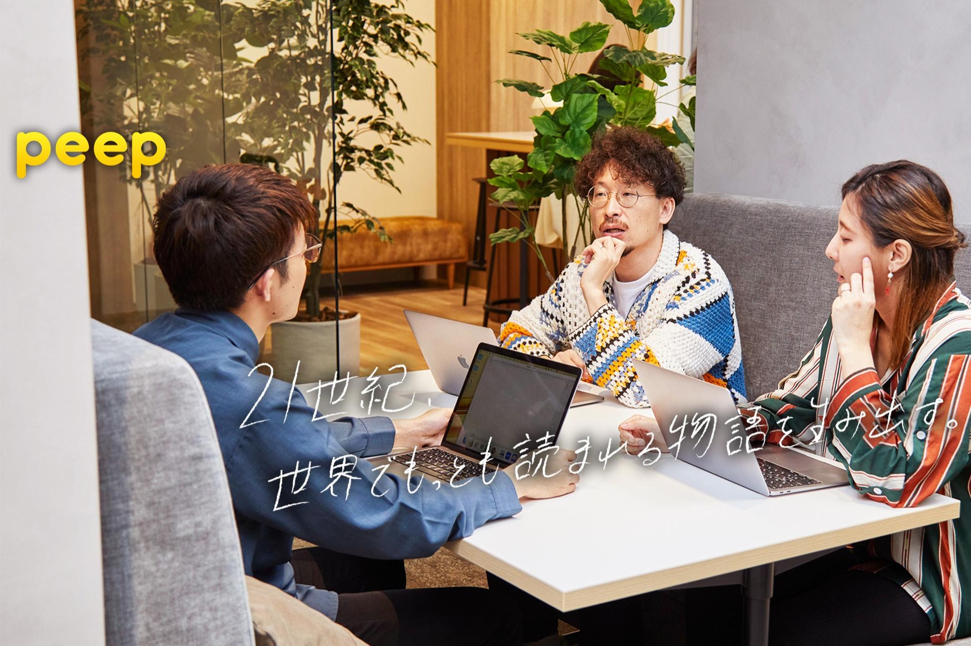 「21世紀、世界でもっとも読まれる物語を生み出す。」 マンガ・ノベルアプリ『peep』を運営する当社では、掲載作品である原作シナリオ(チャットノベル)の開発から、マンガ(モノクロデジタルコミック)等さまざまなデジタルコンテンツの編集・制作を行っております。peepだけではなく、さまざまな電子書籍アプリ・サービスでも配信しており、日々たくさんの読者・ファンの方々に応援いただいております。 私たちは、生み出した作品が多くの人に読まれることがこの上ない喜びであり、作品を通して人とつながることこそがクリエイターの欲求の根源だと考えます。生み出した作品をより多くの人に届けるため、私たちはグローバルでNo.1を目指します。世界を舞台にエンターテイメントの世界に挑戦することは、高い水準のマインドを必要としますが、私たちは本気で世界中の人々を楽しませたい、そして世界一の作品を生み出せると信じています。