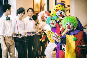 このピエロ、実はスタッフです。新郎新婦、ゲストの皆様を楽しませるぞ!