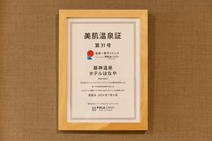 ホテルはなやの温泉は肌をリペアするように整える働きが期待され、不要な皮脂を適度に除去し、角層のうるおい力を高めることが明らかになりました。今回の認定を受けてさらに多くのお客様に温泉の美肌の魅力をお楽しみいただきたいと考えております。