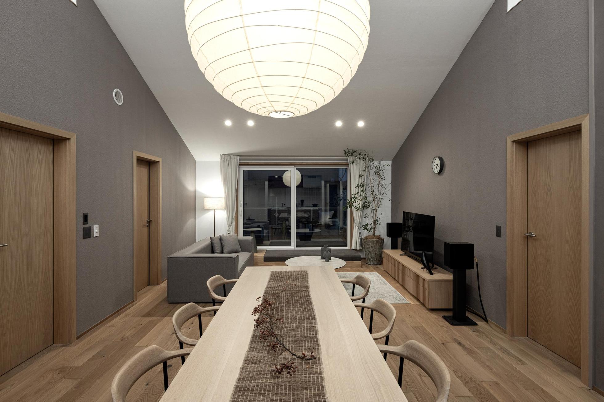 太陽の光を計算して自然エネルギーを最大限に取り入れ、超高気密高断熱で熱を逃がさない設計手法(パッシブデザイン)の考え方と、気密を完全に取っても素材自身が呼吸するため過乾燥にならない素材を使った家づくりを行っています。