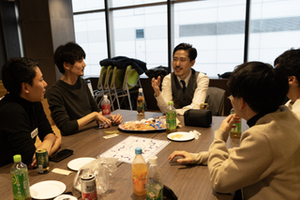 年2~3回ほど社員が集まり、コミュニケーションを深めています。こちらは忘年会の一コマ。社員格付けゲームで盛り上がりました!