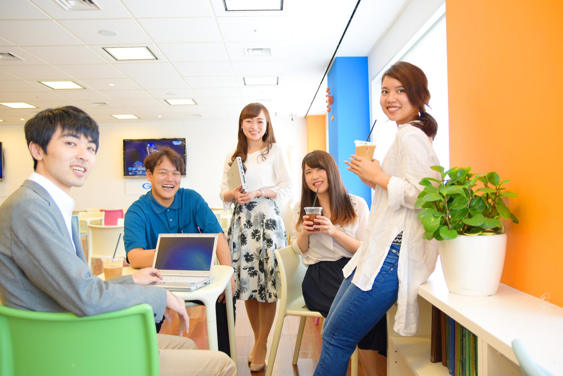 GMO Yours(カフェスペース)の写真です。コミュニケーションを大切に、みんなで事業を成長させています。