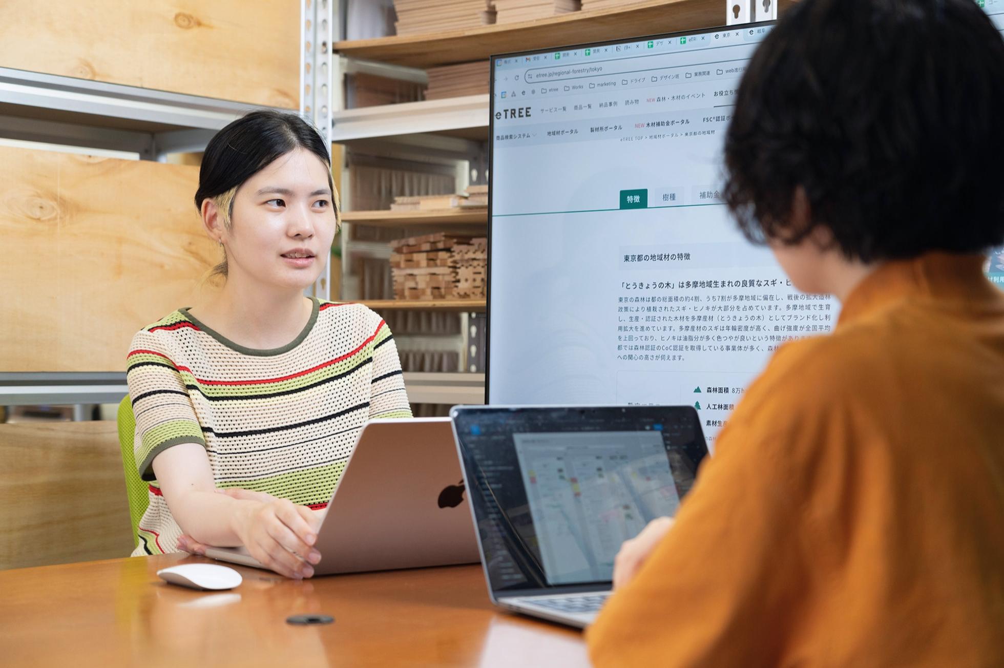 木材の情報プラットフォーム"eTREE"の開発担当をしています。Webプロダクトの開発方針を考えたり、新しいコンテンツの企画や開発チーム作りなどをしています。 新卒でデザイナーとして入社し、サイト設計やチームづくりなどを行ってきました。「デザイン」の力で林業と木材の業界を健全にできる仕組みづくりを目指しています。 【入社経緯】 森未来主催のコンペの受賞をきっかけに、代表の浅野と知り合いました。自分自身が林業の盛んな地域出身なこともあり、デザイナーとして地元や社会に貢献できることや、まだ誰も作っていないものに携わることを魅力的に感じ入社しました。 【働く上で大切にしていること】 まず大事にしているのはチームメンバーです。日々健康に過ごせて、経験に関係なく意見を言い合い健全にものづくりができる環境を大事にしています。健全で強固なチームがユーザーにより良い価値を提供できると信じています。