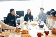 会議ではフラットに意見を言い合います。良い意味で年齢や役職は関係ない組織のため、良いアイディアは即採用します