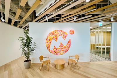 社員の憩いの場、リフレッシュルーム。写真では伝わりにくいですが100名規模のイベントができるゆったりとしたスペースで社員が休憩したり談笑しています。