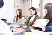 分業体制ではなく、企画→製造→販売→精算まで、マーチャンダイジングに関わる全ての業務を私たち自身が行います。