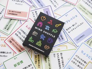 日々のエスノグラフィの中で蓄積された32種のマインドをカード化した「MIND SHUFFLE」。事業や組織の課題を解決する直感型ゲームを考案し、事業アイディア創出ワークショップ等に導入しています