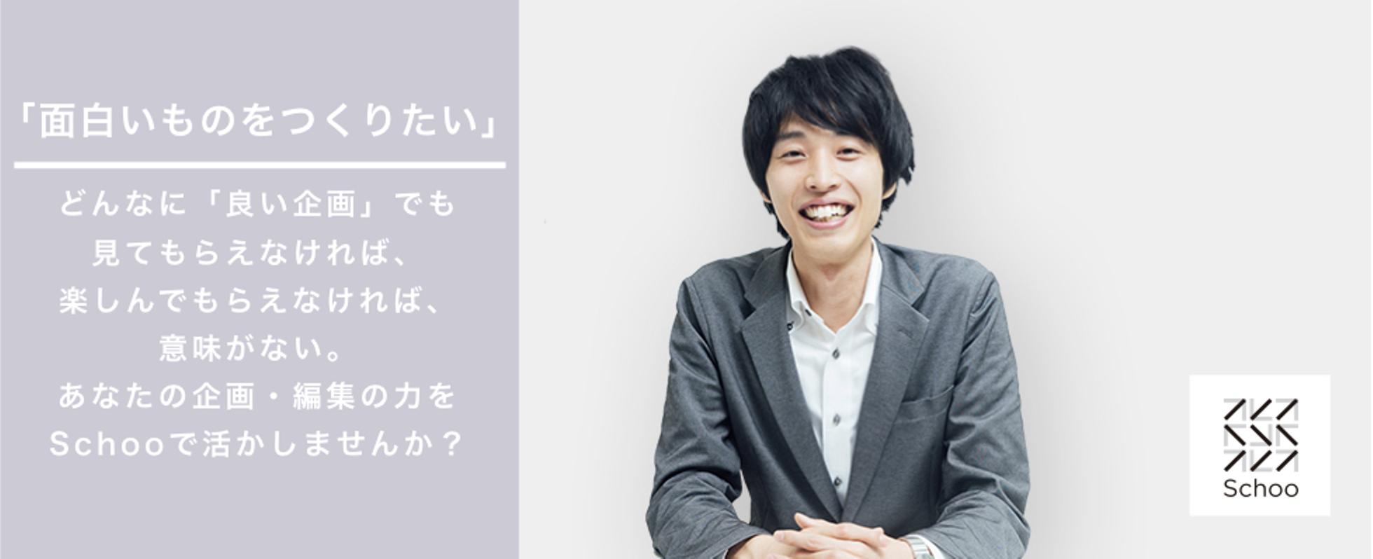 法人事業責任者。Schooエバンジェリスト。2009年関西学院大学総合政策学部卒業後、学習塾の立ち上げに参画。2010年より出版・編集・企画・PR業務に従事。フリーランスを経て2012年3月株式会社スクー入社。コンテンツ部門責任者、事業開発・事業提携などを行う事業開発ユニット、法人向け動画制作サービス、エンタープライズ事業の立ち上げを行い現職。