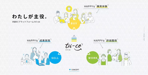 先日公開した共創ECプラットフォーム「tri-co」では、買う人、売る人、働く人…ECに関わる全ての人がHappyになれる 新しいECのカタチを目指すECパッケージがECへの関わり方それぞれの立場で求められるニーズを満たし、課題を解決します。