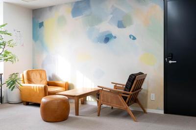 受付の雰囲気です。シンプルな内装に緑がよく映えます。