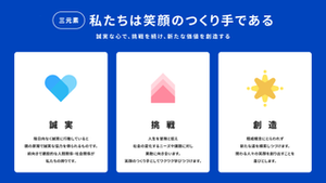誠実な心で、挑戦を続け、新たな価値を創造する個人へ。そんな豊かな人財を持った世の中に必要とされる企業へ。私たちの目標です。