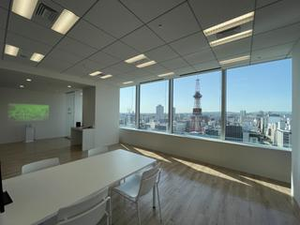 エントランスからと打ち合わせスペース。大きな窓から札幌の街並みが見えます。