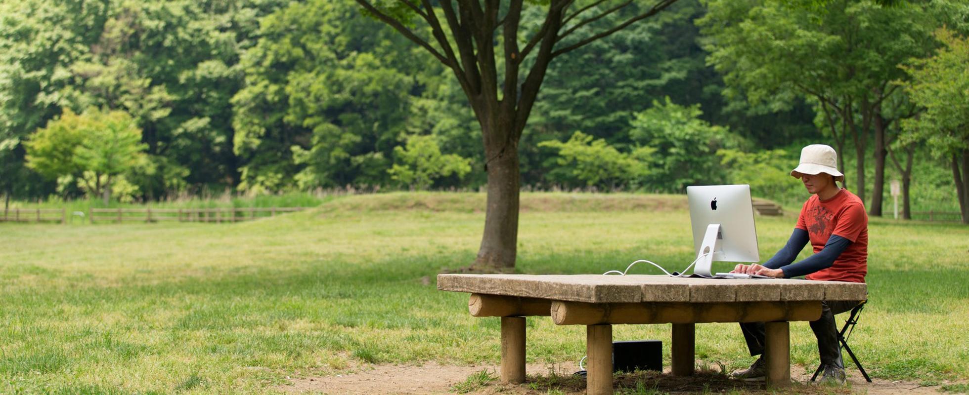 オフィスの屋上には落ち着くことのできるオープンオフィスもあります。開放的な屋上で仕事をする事も可能です。