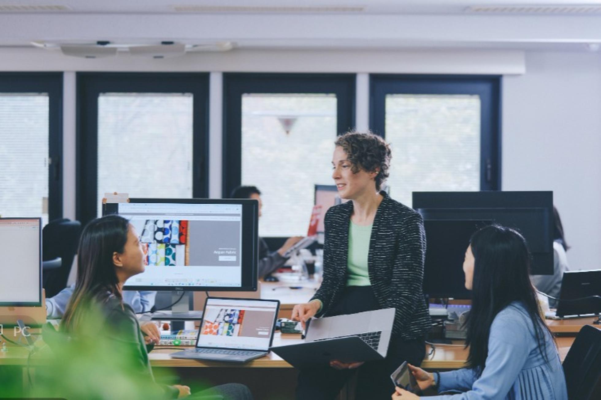 社内では日本語と英語が飛び交うような形でコミュニケーションをとっています。各々がインプットした情報を共有し合ったり、担当案件に関わらずアイデアや意見出しをして力を合わせます。