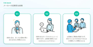 一口に「化学メーカー向け」といっても、開発担当者・営業担当者など役割によって課題や求める機能は異なります。ユーザーの声・メーカー就業経験のある代表の意見をもとにアップデートすることで1つのプラットフォームで複数部署の課題解決を可能としています!
