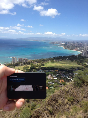 ダイヤモンドヘッドとグローバルWiFiの写真 ハワイのワイキキにもショップがあります。