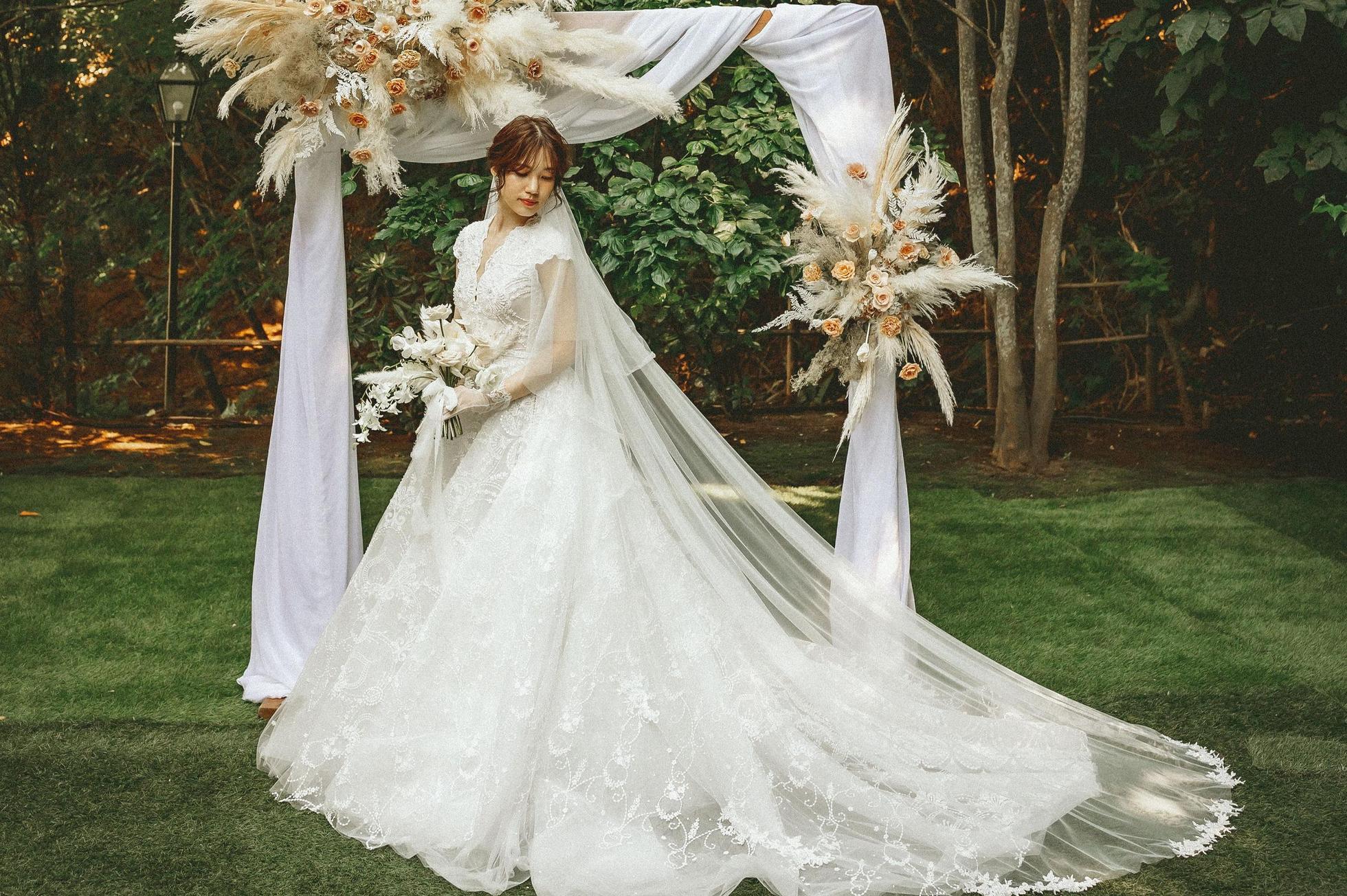 海外のアトリエでハンドメイドされたシルクのウェディングドレス。軽くて上品なツヤ、そしてウエストからふんわりと広がった愛らしいシルエットはお姫様そのもの