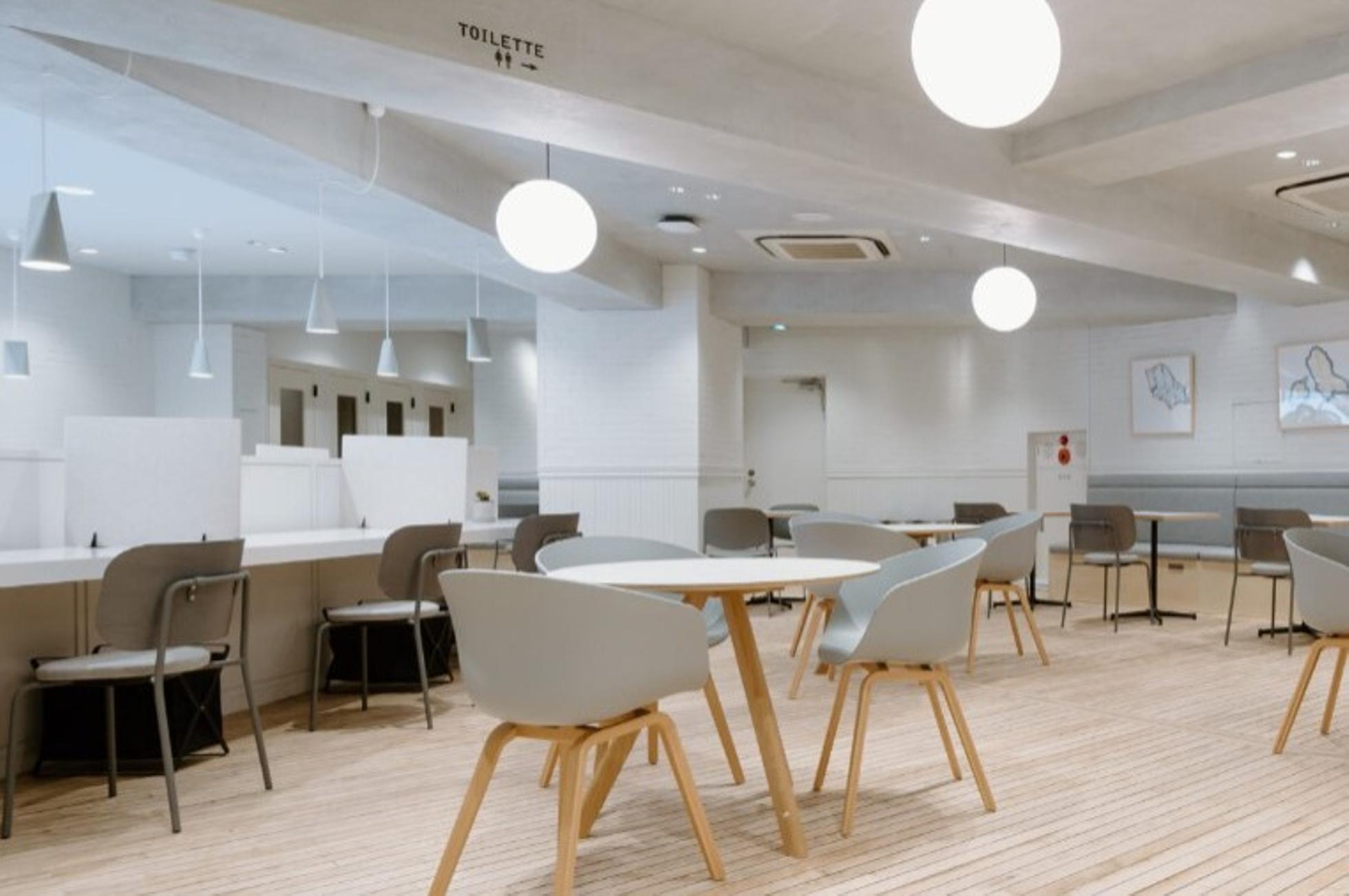 渋谷駅宮益坂至近に開業したgoodoffice渋谷駅前。駅前交差点に面したアクセス最高の立地を活かし、明るく開放的な雰囲気で快適に過ごせるシェアワークラウンジを作りました。(画像:goodoffice渋谷駅前)