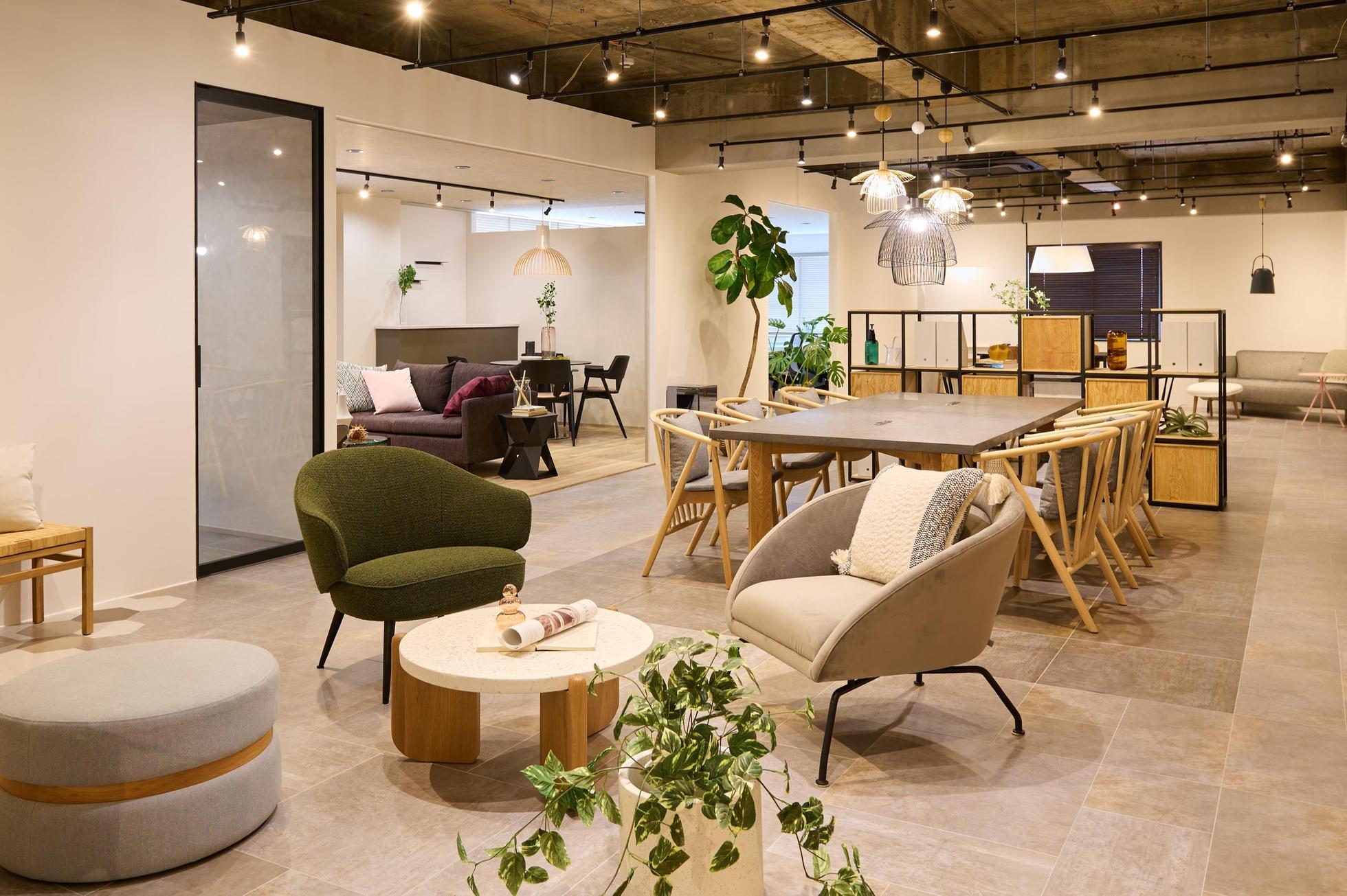 プランナーの社内研修にも使われるステージングスペースには来社されるお客様をご案内することも
