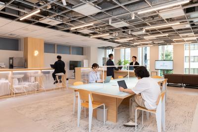 リモートokですが、オフィス環境も整っています。日中はフリースペースで仕事をすることも。