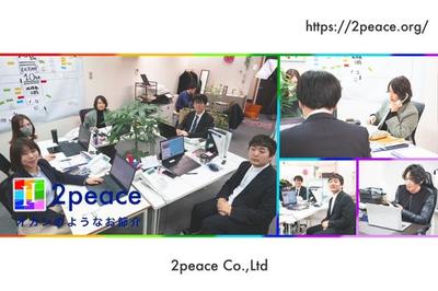 ■オカンのようにお節介で温かく■ 仕事は相手があって初めて成り立つもの。 自分に目を向けるのではなく、他人を思いやれる人間であり続けます。 ▍人財の力で企業の発展に役立ち、豊かで明るい社会づくりに貢献する。 私たちは「人間力」にフォーカスして、人財の皆さんにしっかりと指導、教育を行っています。 人財には2peaceで働くメンバーだけでなく、これから仲間になる方、2peaceから羽ばたいていく方すべてを含みます。スキル・技術の大切さも理解しつつ、何よりも人間性のある人財を輩出してまいります。 ■起業から今につながるストーリー■ 当社代表が社会人人生を歩み始めた当時、自分のために勉強していた学生時代とは大きく変わり、社会では相手の満足度がそのまま自分に跳ね返ってくる感覚を知ることになります。セールスでも自分が売りたいものを売るのではなく、まずは自分を知ってもらい、自分のファンになってもらうことの大切さに気付きました。しばらくして体調を崩し、働くことの大変さ、尊さ、難しさを実感します。 世の中には自分と同じような思いを抱く人がいるはず。 そうした人たちの力になりたい。 自分だからできることがある。 そうは言っても企業に人材を紹介するだけでは、私がやる意味がないだろう。 ならば――。と社会貢献できる事業を結び付けて現在の2peaceを立ち上げます。 ■解決したい問題■ いじめ・不登校など学校にまつわる問題について行政や企業のアプローチが行われていますが、認知件数・生徒数はそれぞれ増加しています。これらの問題には学生時代の過ごし方が深く関わっていると私たちは考えました。実際の活動として当社事業の一環で学校を回って研修を実施し、不登校の状態にいた生徒が通学・登校できるようになったケースもあります。 この取り組みを就職活動につなげれば、学生本人が社会に出て誰かの役に立てるようになります。地方で行えば地域に活力が生まれ、いずれ過疎化が解消されていくはずです。 2peaceは組織体制を整えつつ事業会社を立ち上げ、雇用を賄える環境をつくり、ゆくゆくは地方での人材育成を開始。リモートでも働ける環境をつくっていく所存です。