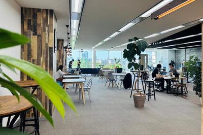 執務室や会議室はガラス張りで、社内が見渡せるオフィスです。