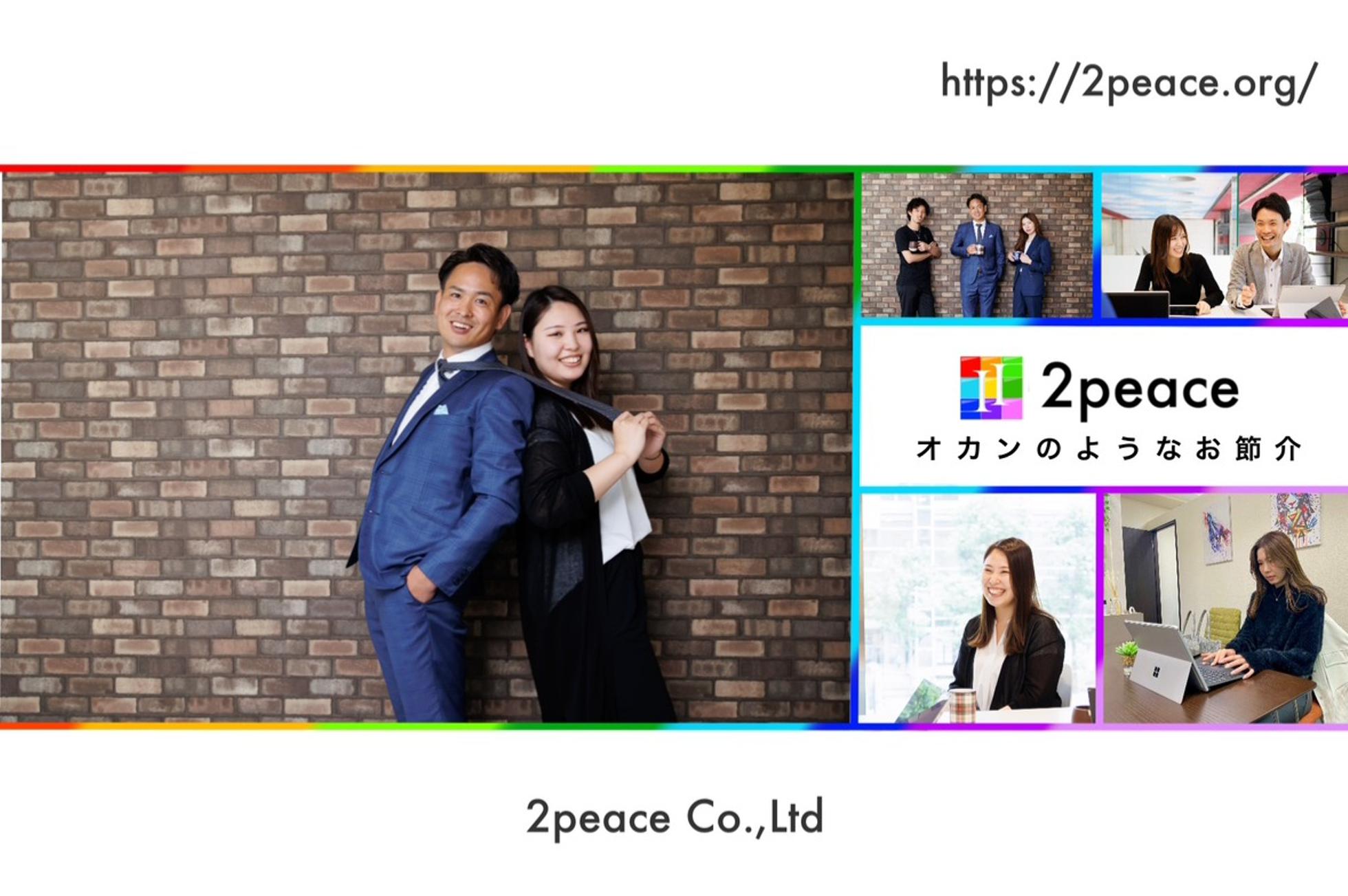 株式会社2peaceは「オカンのようなお節介で温かく」をスローガンに、企業の採用活動と求職者の転職活動支援をメインに事業を展開している、大阪のベンチャー企業です。 人財紹介/人財派遣/人財教育/HRコンサルティングまで、人に関わるあらゆる悩みを解決します。 「無資格・未経験」でも社会参画できる仕組みを作り出し、採用市場の変化と、採用現場の動向をしっかりと捉え、企業も働く人も前向きに社会貢献ができる世の中を、人財事業を通じて創出していきます。 【事業内容】 「人財紹介」 全国求人案件数20000件。求職者エントリー数1000人超/月を取り扱っています。「求職者ファースト」の寄り添い方で、全国の転職市場を支えます。求職者だけではわからないこと、判断しづらいことも、転職までの伴走支援でサポートします。20代〜40代の転職を積極的に応援しています。また製造業の転職支援も積極的に取り組んでおり、大手製造会社から地方の町工場まで幅広く取り扱っています。 「人財派遣」 関西を中心に幅広く対応しています。特に製造/販売/営業/事務といった安定した継続的な仕事に強く、就職後も徹底した伴走サポートを行います。 「HRコンサルティング」 条件だけでは差別化できない企業を中心に、採用の「見える化」を基準に採用につながるコンサルティングを行っています。MVVの再設定から、労務環境の改善、人事評価制度の設定まで、人財紹介会社の領域を超えて伴走支援を行なっています。 「インターン生の採用」 新卒採用支援を行いながら、自社のインターン生採用も取り入れています。企業には社員が、学生にはインターン生がアプローチを行う形式を採用しています。学生の理想の就活を形にするために、学生ならではの発想とポテンシャルで活躍の場を提供しています。 「キャリア教育事業」 中高生を中心に、働く意味と働くことに対する考えを、遊びの中から学ぶ「アソビカケル」事業を展開しています。職能ではなく「人間力」を養うきっかけをキャリア教育の中から創っていきます。 「SES事業/エンジニア雇用」 エンジニア人財の雇用を支えるために、2024年からSES事業の展開をしています。正社員、契約社員、業務委託と働き方も様々になります。全国の案件を扱い、エンジニア能力に合わせて幅広い提案ができるように取り扱っています。 【今後の展望】 2025年には、社員数を20名に増やす計画です。各業種の担当を専任で任せ、より広い業種に、より深く関われるように事業規模拡大を計画しています。またM&Aによる事業規模拡大も計画しており、人財会社だけでは満たせなかった領域まで一貫したサポートができるように展開していく計画です。 売り上げ規模と共に、当社のサービスを通して世の中にどんな変革を与えられるかを大切にしています。また、社会問題にアプローチできる事業を設計して、社会貢献を軸に世の中を変えられるサービスを創り「あなたにとって唯一無二の存在」となることを目指します。 【熱くなれる仲間募集】 若手人財を中心に、人の想いに共感し、ともに成長できる仲間がたくさん集まっています。 ・人の事を大切にできる方。 ・一丸となって、事業を作り上げたい方。 ・挑戦することを恐れず、成長意欲の高い方。
